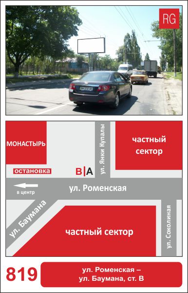 | 819 | Сумы | ул.Роменская | ул.Роменская, 5, из центра | B | борд 6х3 м |