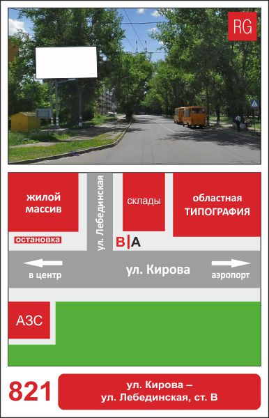 | 821 | Сумы | ул.Кирова | ул.Кирова - ул.Лебединская, из центра | B | борд 6х3 м |