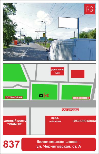| 837 | Сумы | Белопольское шоссе | Белопольское шоссе, р-н ГАИ, из центра | A | борд 6х3 м |