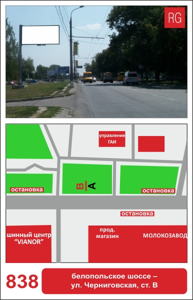 | 838 | Сумы | Белопольское шоссе | Белопольское шоссе, р-н ГАИ, в центр | B | борд 6х3 м |