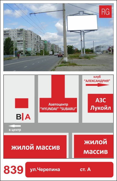 | 839 | Сумы | ул.Черепина | ул.Черепина, 72-74, в центр | A | борд 6х3 м |