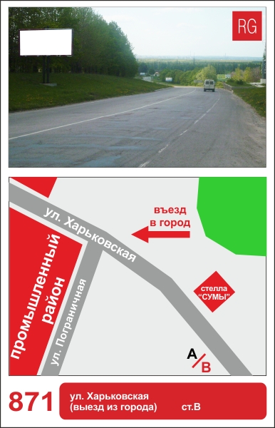 | 871 | Сумы | Въезд в город | трасса Харьков-Полтава-Сумы на подъеме перед памятником | B | борд 6х3 м |