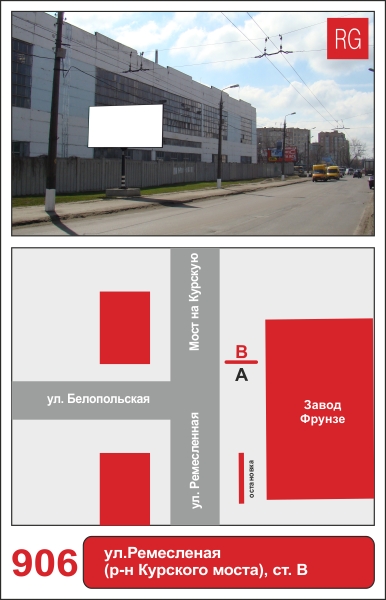| 906 | Сумы | ул.Ремесленная | ул. Ремесленная, р-н Курского моста | B | борд 6х3 м |