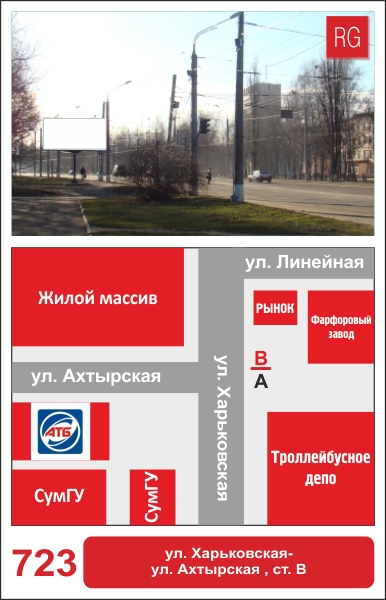 | 728 | Сумы | ул.Харьковская | ул.Харьковская (район мясокомбината) | A | борд 6х3 м |
