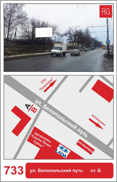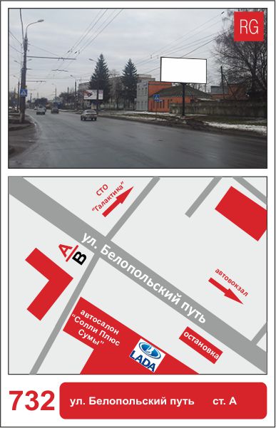 | 745 | Сумы | Белопольское шоссе | Белопольское шоссе, 18 (ГАИ) | A | борд 6х3 м |