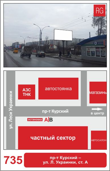 | 739 | Сумы | пр-т Курский | Курский пр-т - ул. Л. Украинка | A | борд 6х3 м |