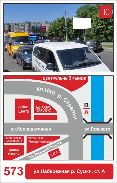 | 573 | Сумы | ул.Набережная р.Стрелки | ул.Набережная р.Стрелки (Центр. Рынок) | A | борд 6х3 м |