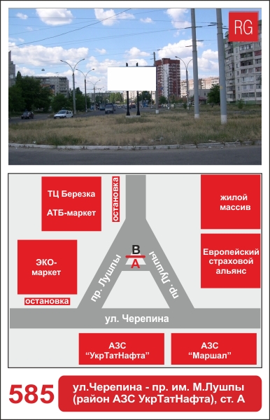 | 585 | Сумы | ул.Черепина | ул.Черепина - пр-т им.М.Лушпы (АЗС) | A | борд 6х3 м |