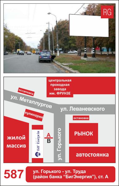 | 587 | Сумы | ул.Горького | ул.Горького - ул.Труда (банк "Бигэнергия") | A | борд 6х3 м |