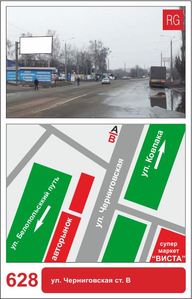 | 628 | Сумы | ул.Черниговская | ул. Черниговская (АЗС) | B | борд 6х3 м |