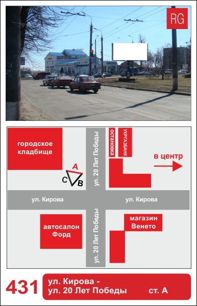 | 431 | Сумы | ул.Кирова | ул.Кирова - ул.20 лет Победы | A | борд 6х3 м |