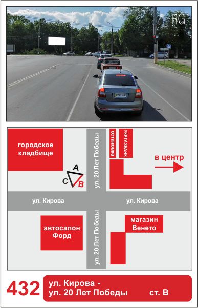 | 432 | Сумы | ул.Кирова | ул.Кирова - ул.20 лет Победы | B | борд 6х3 м |