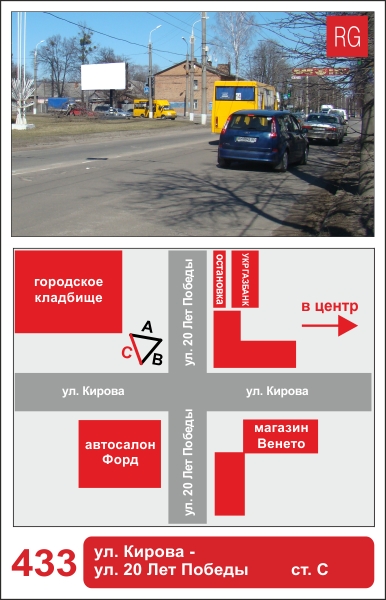 | 433 | Сумы | ул.Кирова | ул.Кирова - ул.20 лет Победы | C | борд 6х3 м |
