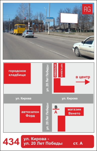 | 434 | Сумы | ул.Кирова | ул.Кирова - ул.20 лет Победы | A | борд 6х3 м |