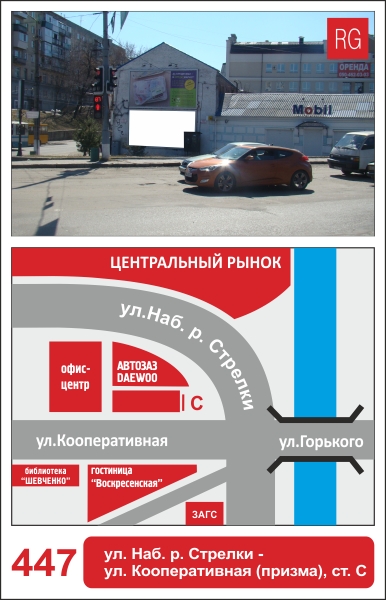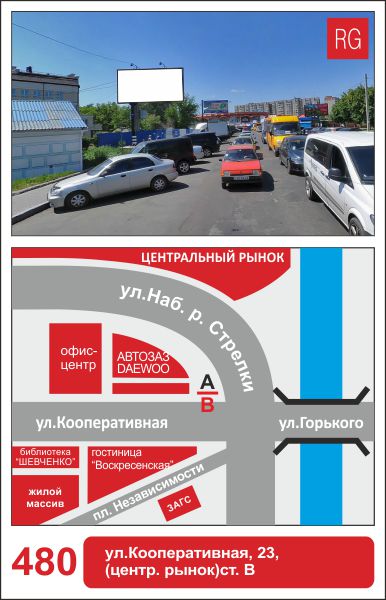 | 480 | Сумы | ул.Набережная р.Стрелки | ул.Кооперативная, 23 (центр. рынок) | B | борд 6х3 м |