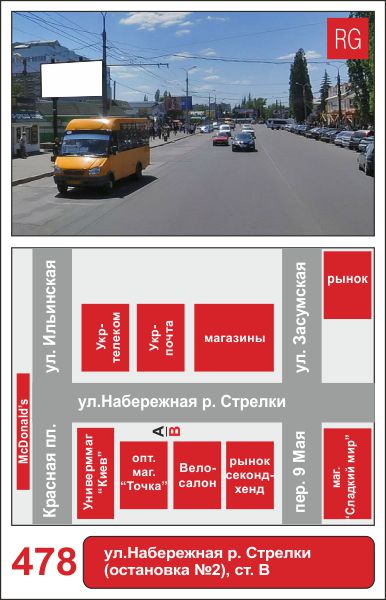 | 478 | Сумы | ул.Набережная р.Стрелки | ул.Набережная р.Стрелки (остановка 2) | B | борд 6х3 м |
