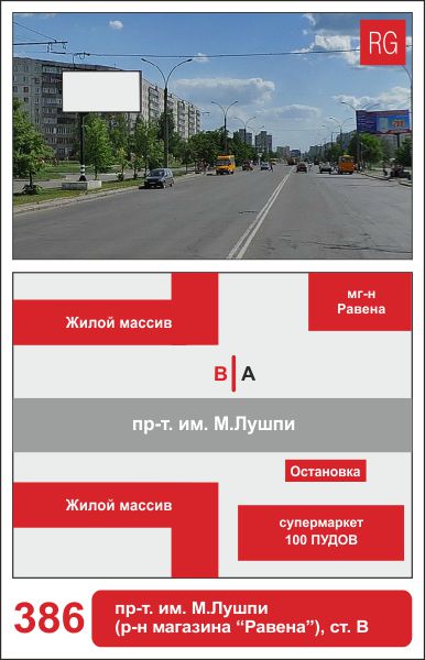 | 386 | Сумы | пр-т им. М.Лушпы | пр-т им.М.Лушпы (супермаркет Равена) | B | борд 6х3 м |