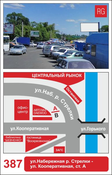 | 387 | Сумы | ул.Набережная р.Стрелки | ул.Набережная р.Стрелки - ул.Кооперативная | A | борд 6х3 м |