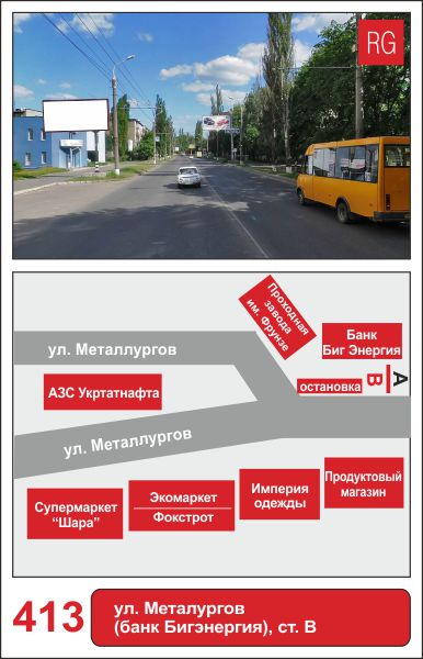 | 413 | Сумы | ул.Металлургов | ул.Металлургов (банк Бигэнергия) | B | борд 6х3 м |