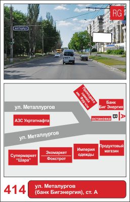 | 414 | Сумы | ул.Металлургов | ул.Металлургов (банк Бигэнергия) | A | борд 6х3 м |
