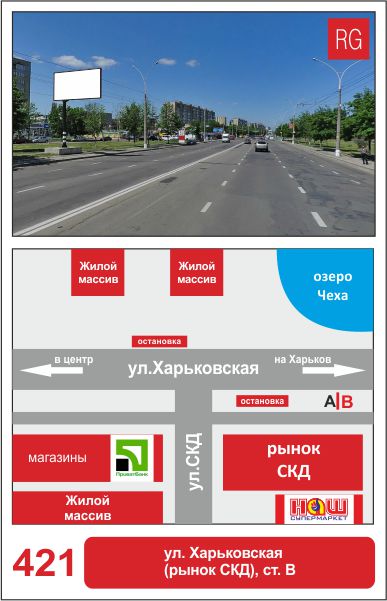| 421 | Сумы | ул.Харьковская | ул.Харьковская (рынок СКД) | B | борд 6х3 м |
