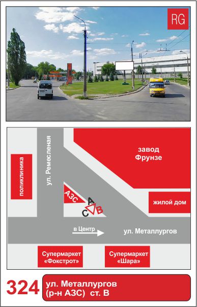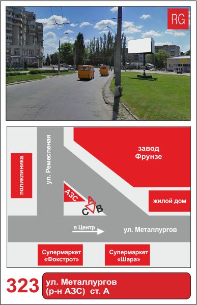 | 323 | Сумы | ул.Металлургов | ул. Металлургов (р-н АЗС) | A | борд 6х3 м |
