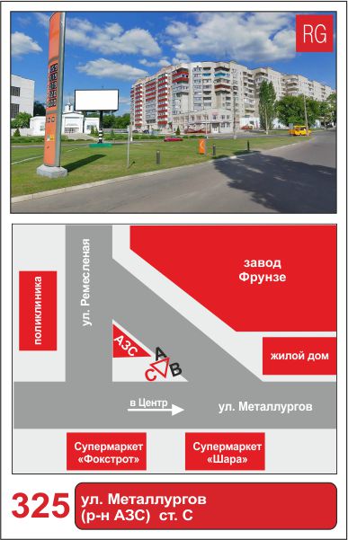 | 325 | Сумы | ул.Металлургов | ул. Металлургов (р-н АЗС) | C | борд 6х3 м |