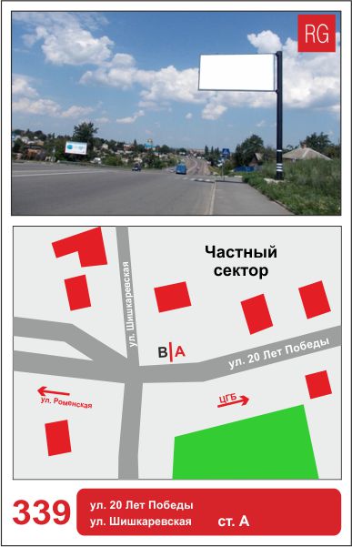 | 339 | Сумы | ул.20 лет Победы | ул.20 Лет Победы - ул.Шишкаревская | A | борд 6х3 м |