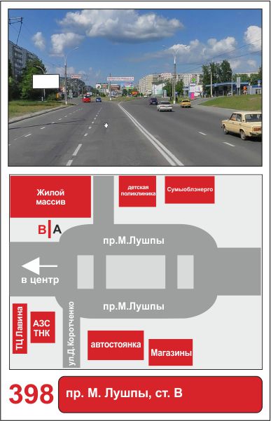 | 398 | Сумы | пр-т им. М.Лушпы | пр-т им.М.Лушпы | B | борд 6х3 м |