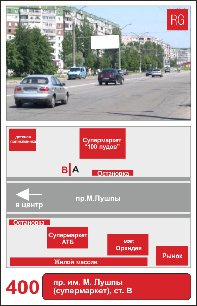 | 400 | Сумы | пр-т им. М.Лушпы | пр-т им.М.Лушпы (супермаркет) | B | борд 6х3 м |