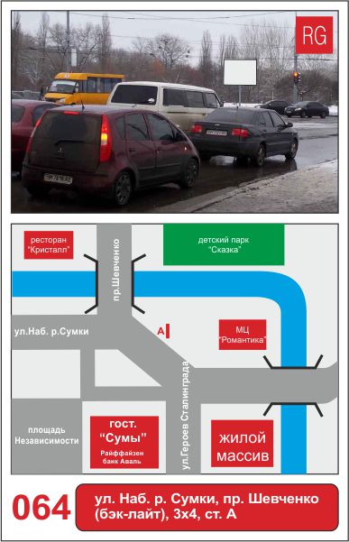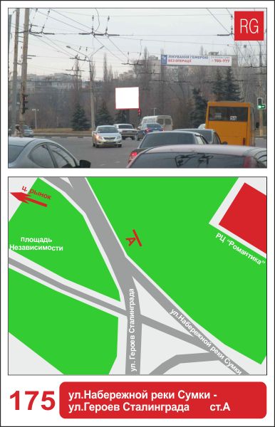 | 64 | Сумы | ул.Героев Сталинграда | ул.Героев Сталинграда - Набережная Псла - мост на Троицкую | A | борд 4х3 м |