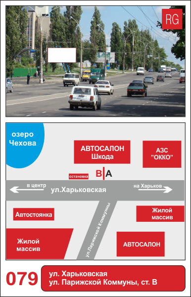 | 79 | Сумы | ул.Харьковская | ул.Харьковская - ул. Парижской Коммуны, салон КИА | B | борд 6х3 м |